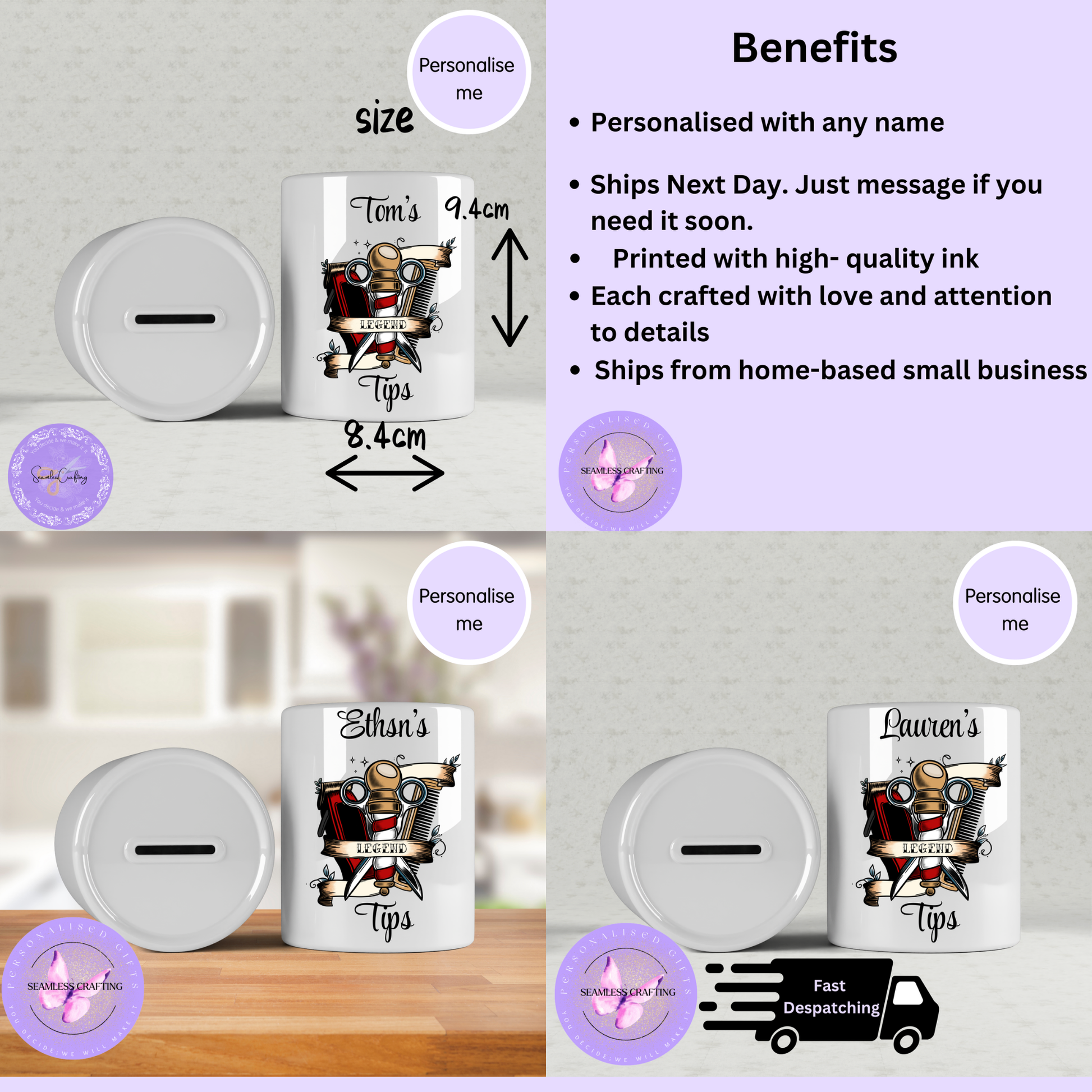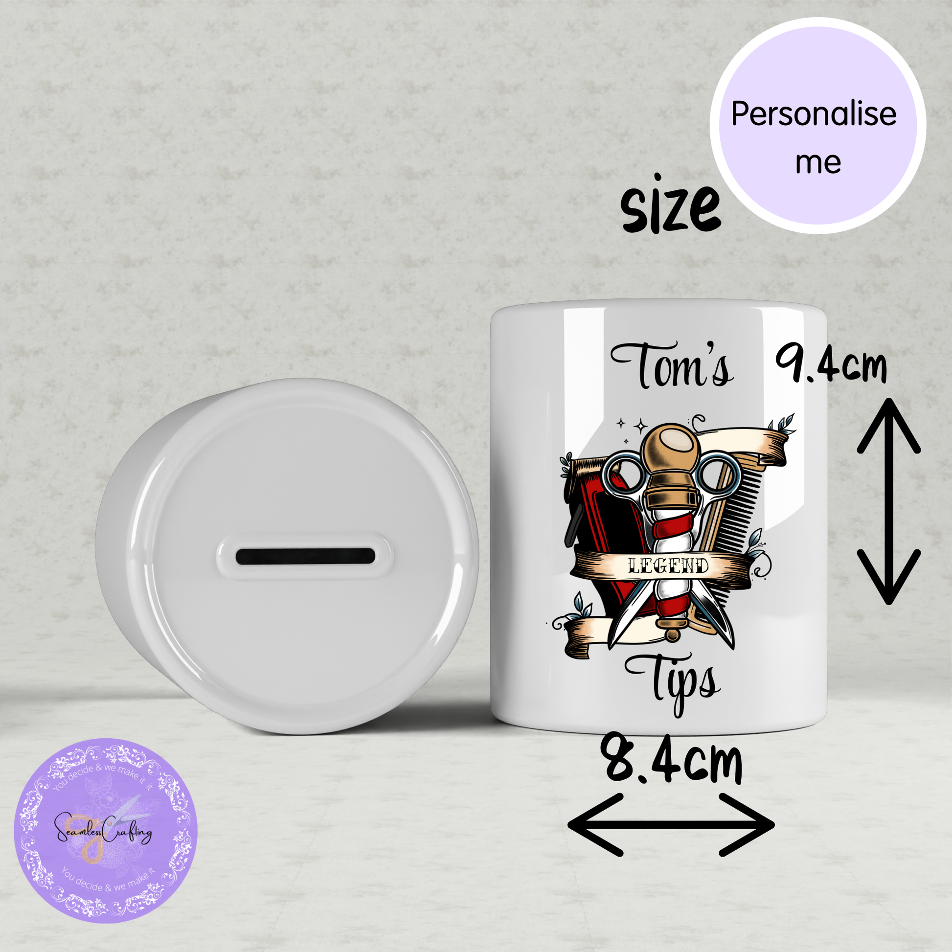 Crafted from high-quality ceramic and printed using long-lasting, high-quality ink, this barber tip jar is durable, stylish, and made to be used daily. Each piece is carefully printed to order by a UK home-based small business, ensuring attention to detail in every item.