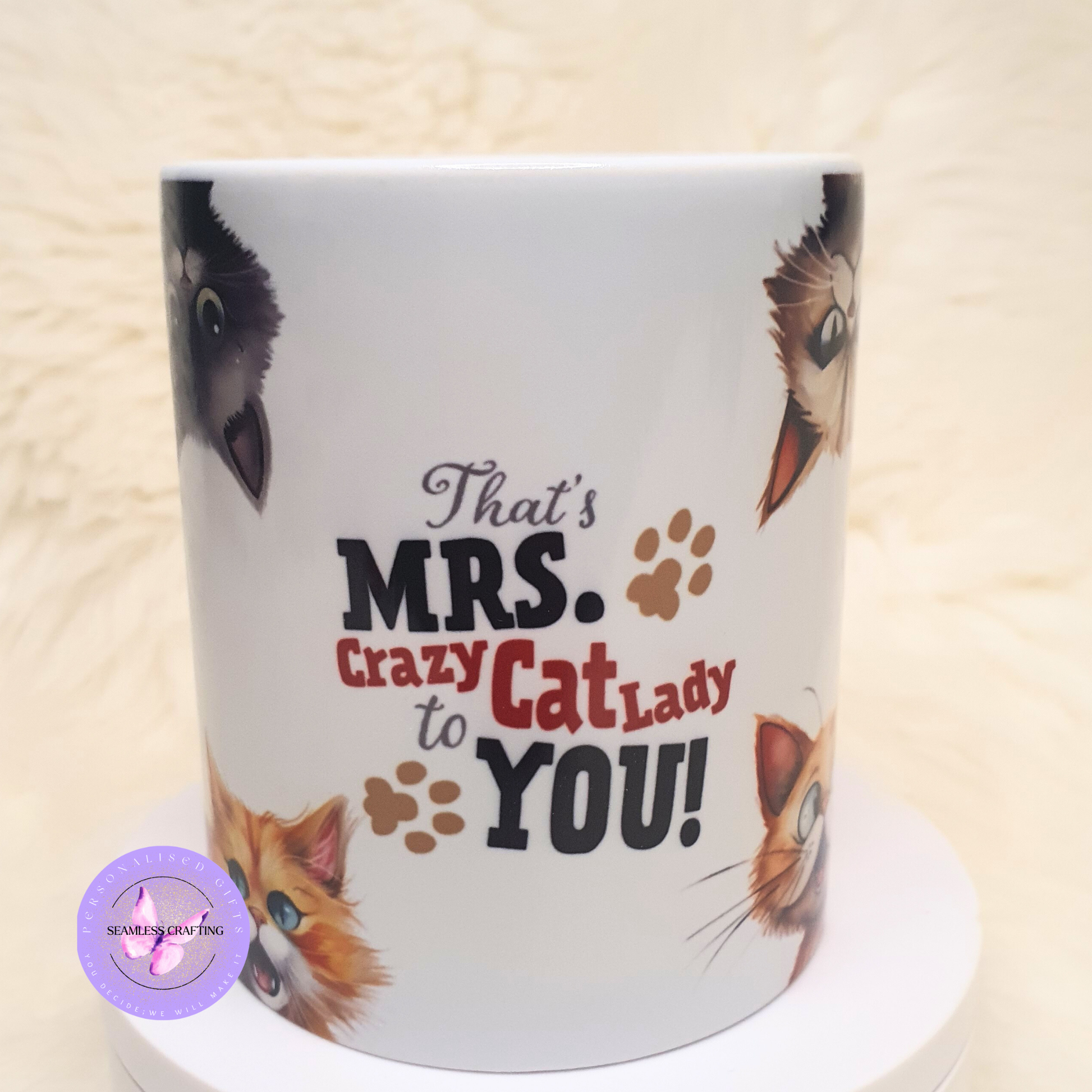Personalisation: Add any name (e.g., Sandra – That’s Mrs. Crazy Cat Lady to You!)
