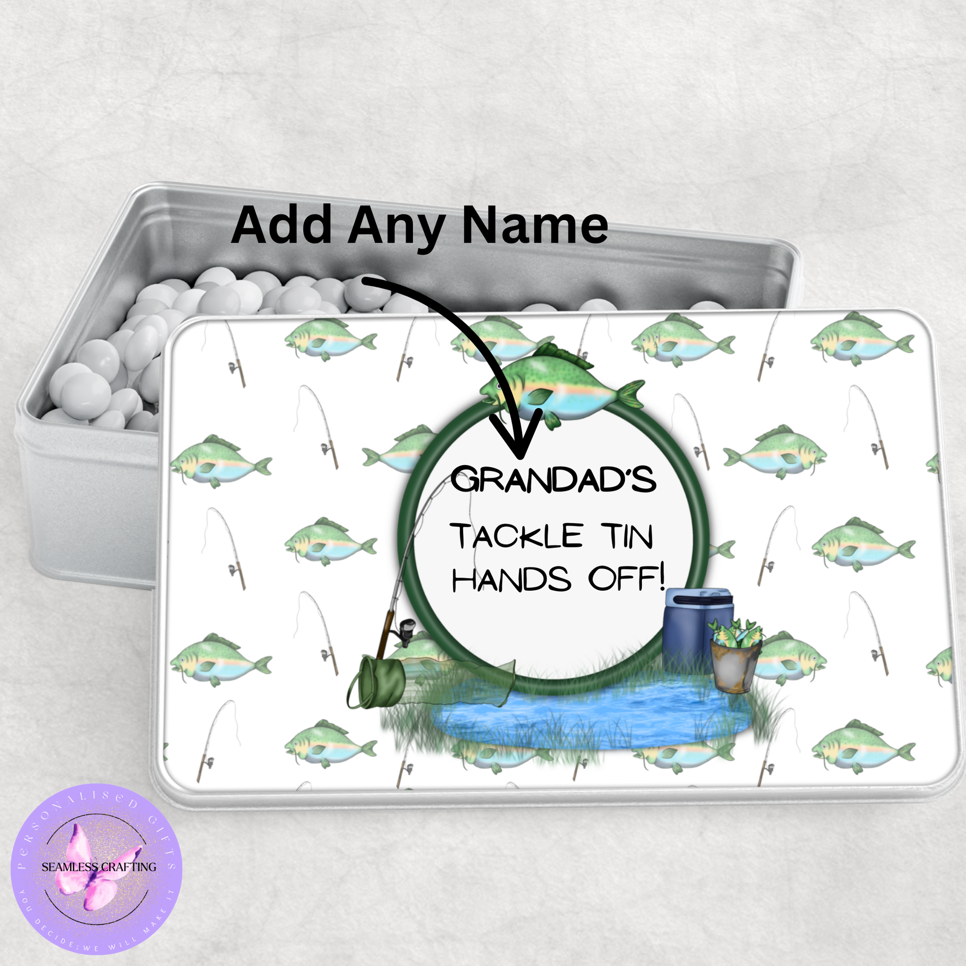 Personalised Fishing Tackle Tin – Custom Fisherman Gift for Dad, Grandad or Son | Fisherman Storage Box | Fishing Accessories Tin