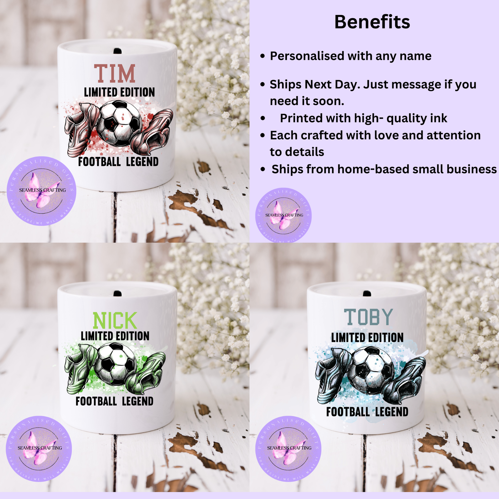 Score big savings goals with this Personalised Football Money Box — designed for little (and big!) football legends! ⚽🏆